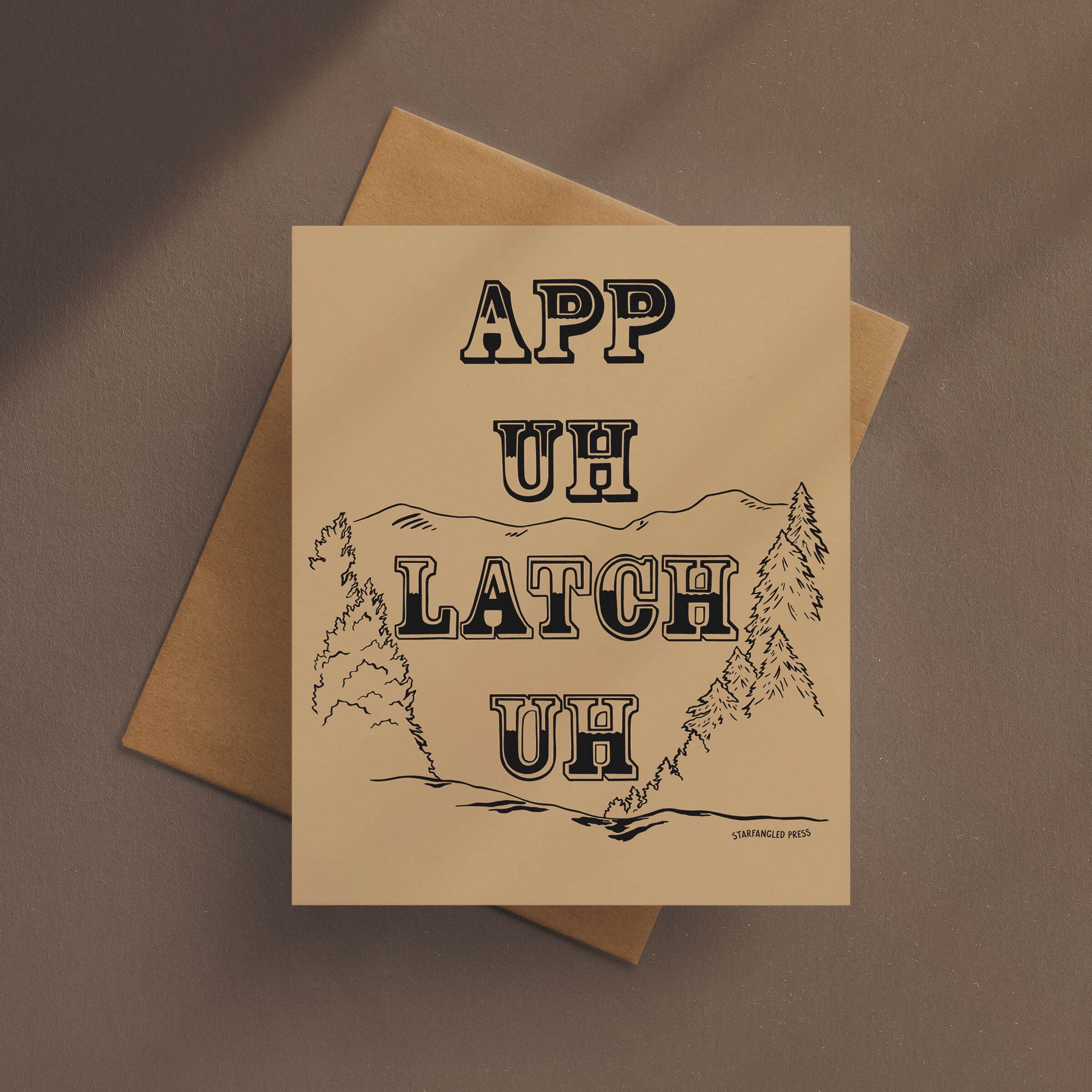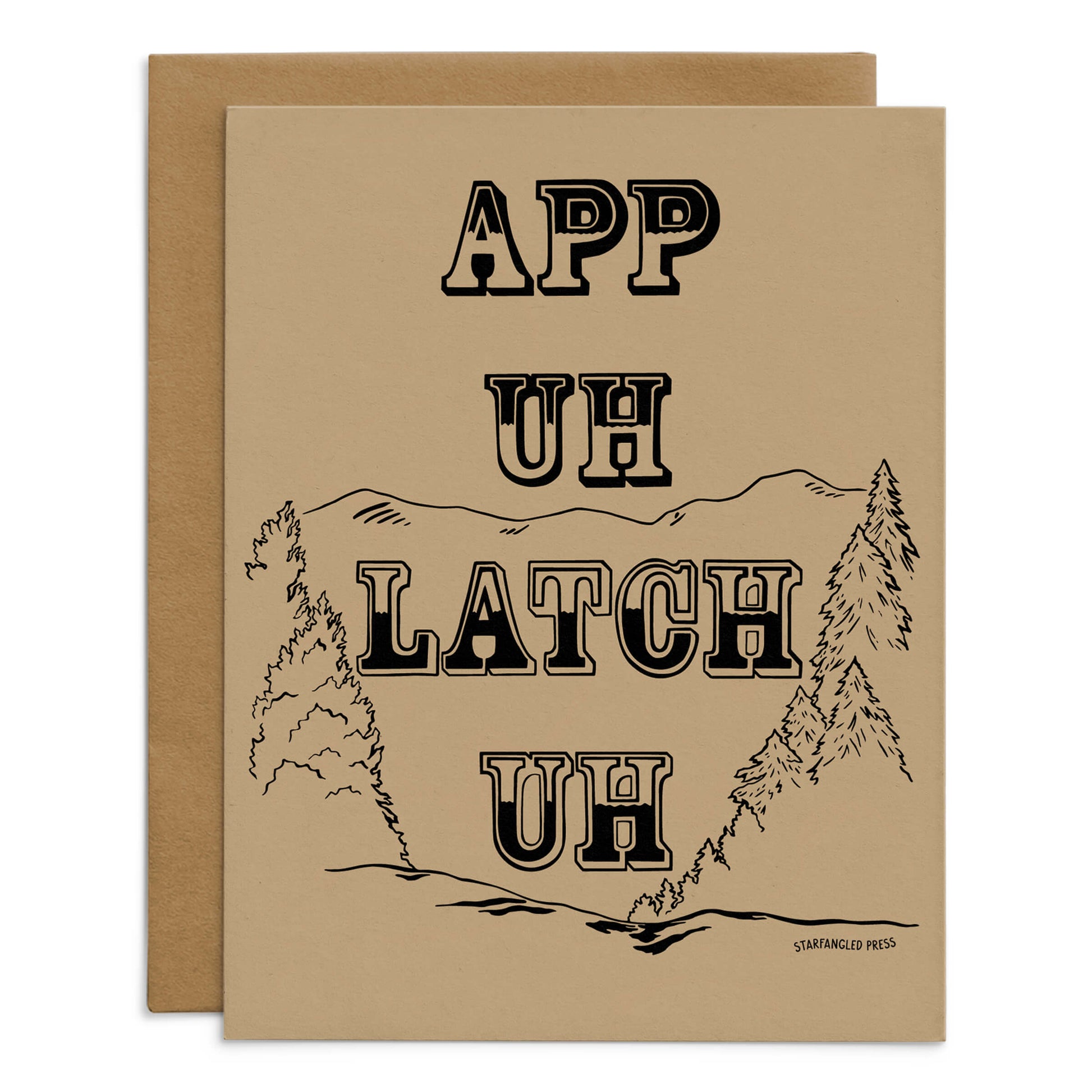 Either you know, or you don't know! Celebrate Appalachian pride with this bold and playful greeting card from Starfangled Press, featuring the phonetic breakdown of the preferred pronunciation of our mountain home—App-uh-LATCH-uh!