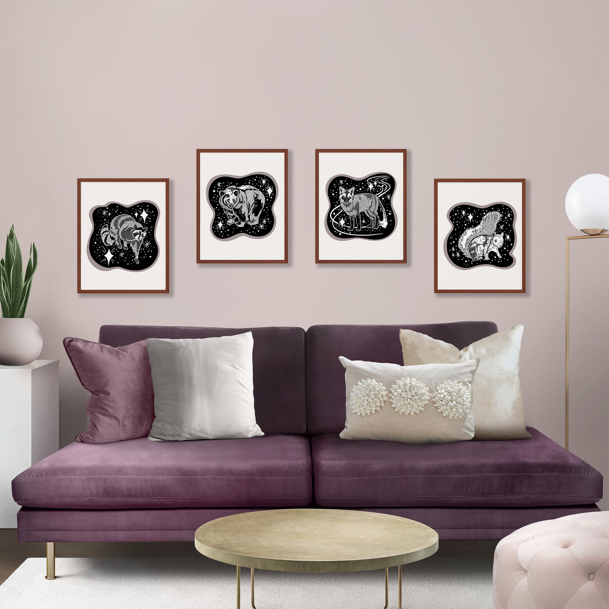 The Cosmic White Squirrel Screenprint is an art print from the Starfangled Press Cosmic Critters series and a tribute to our Brevard, North Carolina hometown hero - the white squirrel.