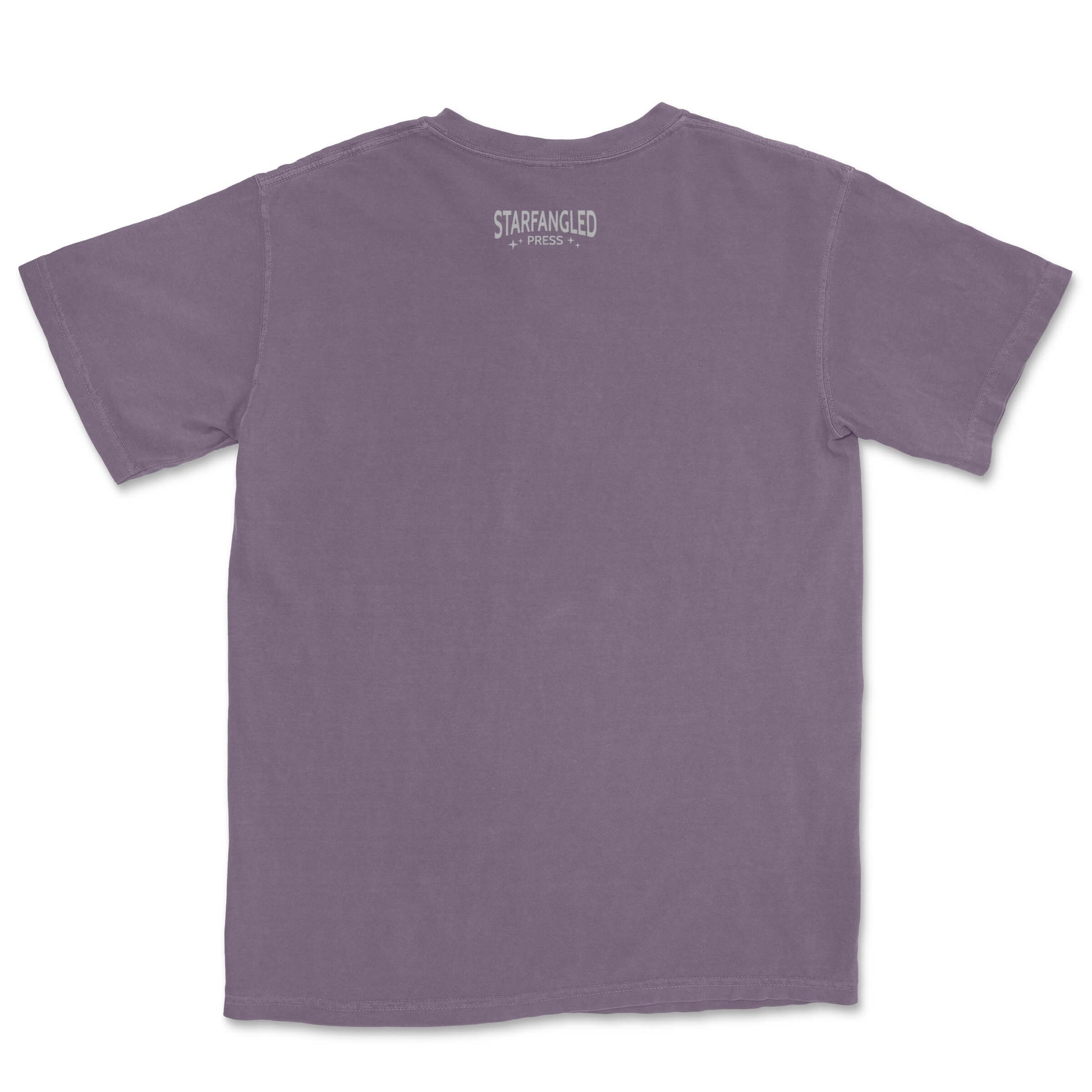 Printed in soft shimmer white on a muted purple Comfort Colors tee, this shirt keeps that same hand-drawn, woodcut-inspired look you love — just with a new color that makes it feel a little extra magical. Perfect for stargazers, locals, and anyone who appreciates a little small-town weird in their wardrobe.
