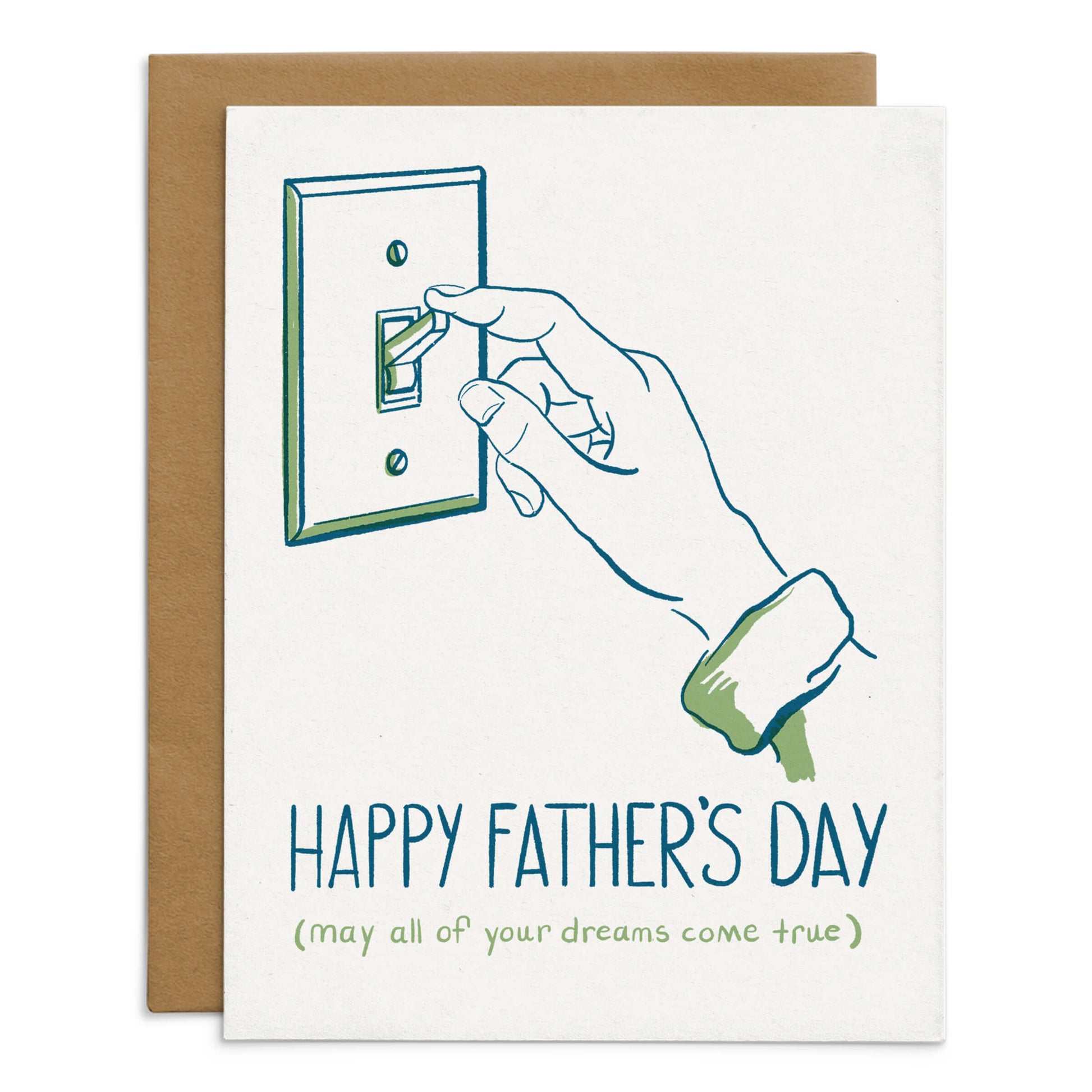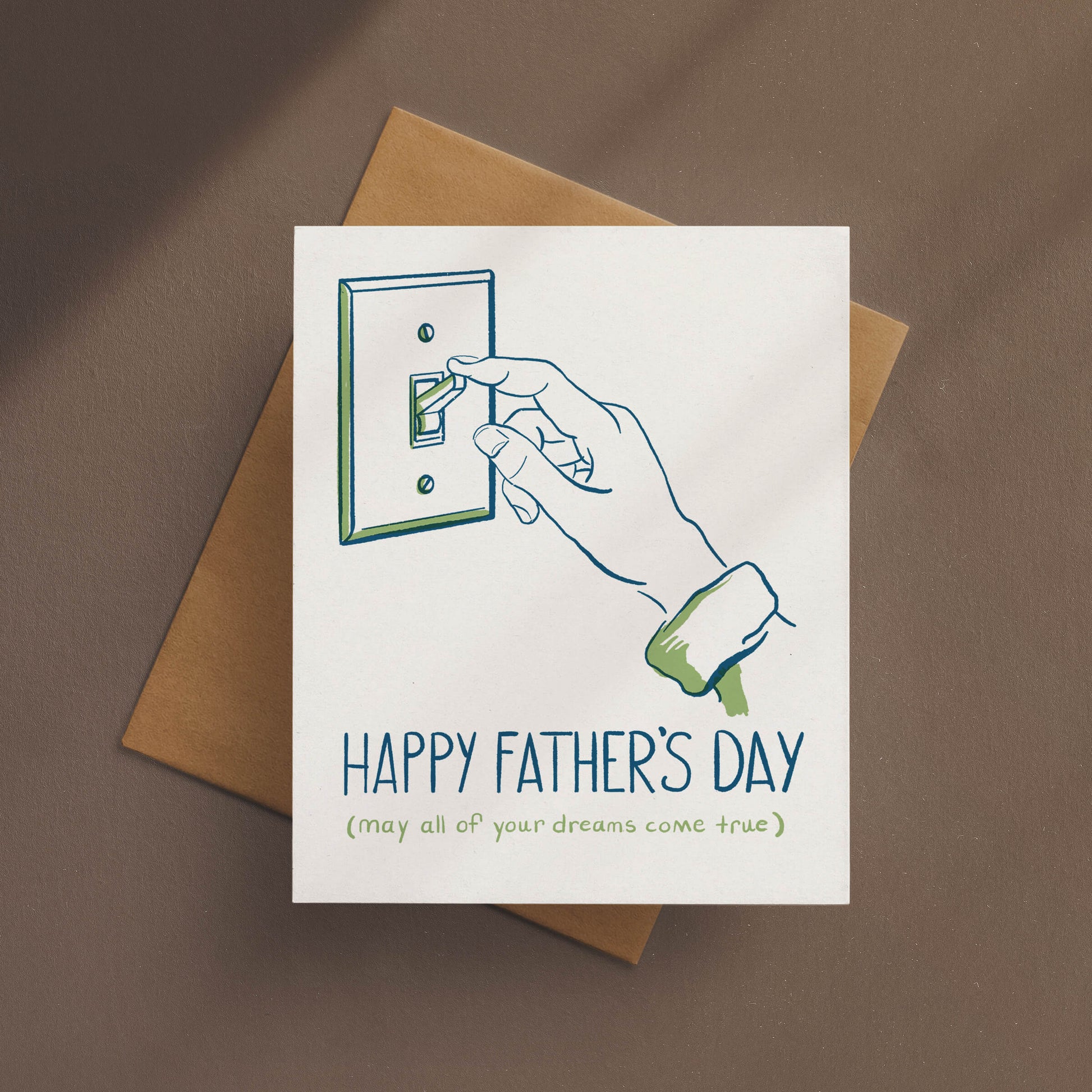 Celebrate Father's Day with a wink and a smile and the Happy Father's Day Light Switch card from Starfangled Press! Featuring a playful illustration of a hand reaching up to flick off a light switch, this card cleverly nods to Dad’s timeless advice to save energy - and maybe even a bit of money.