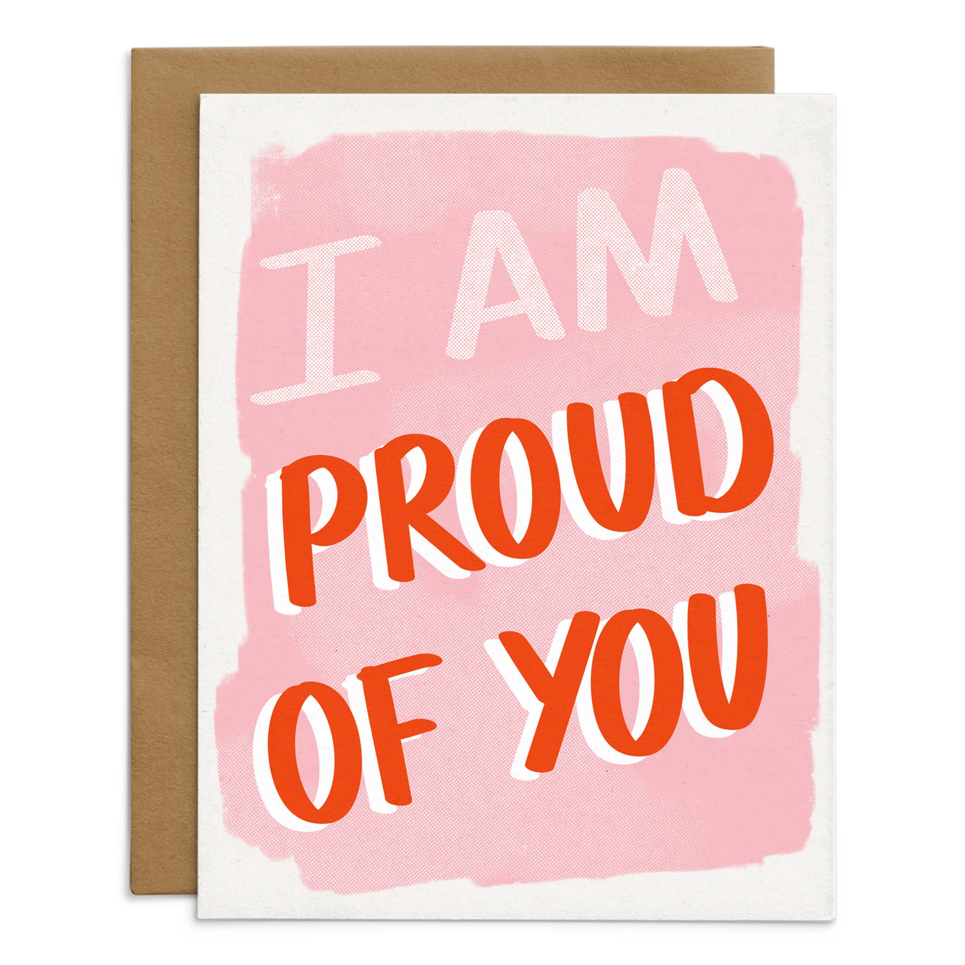 Celebrate achievements big and small with the I Am Proud of You card from Starfangled Press! This stunning design features a textured pink background that beautifully blends with the softly muted “I Am” text, while “Proud of You” bursts forth in a vibrant red-orange hue, making the message pop with energy and warmth.