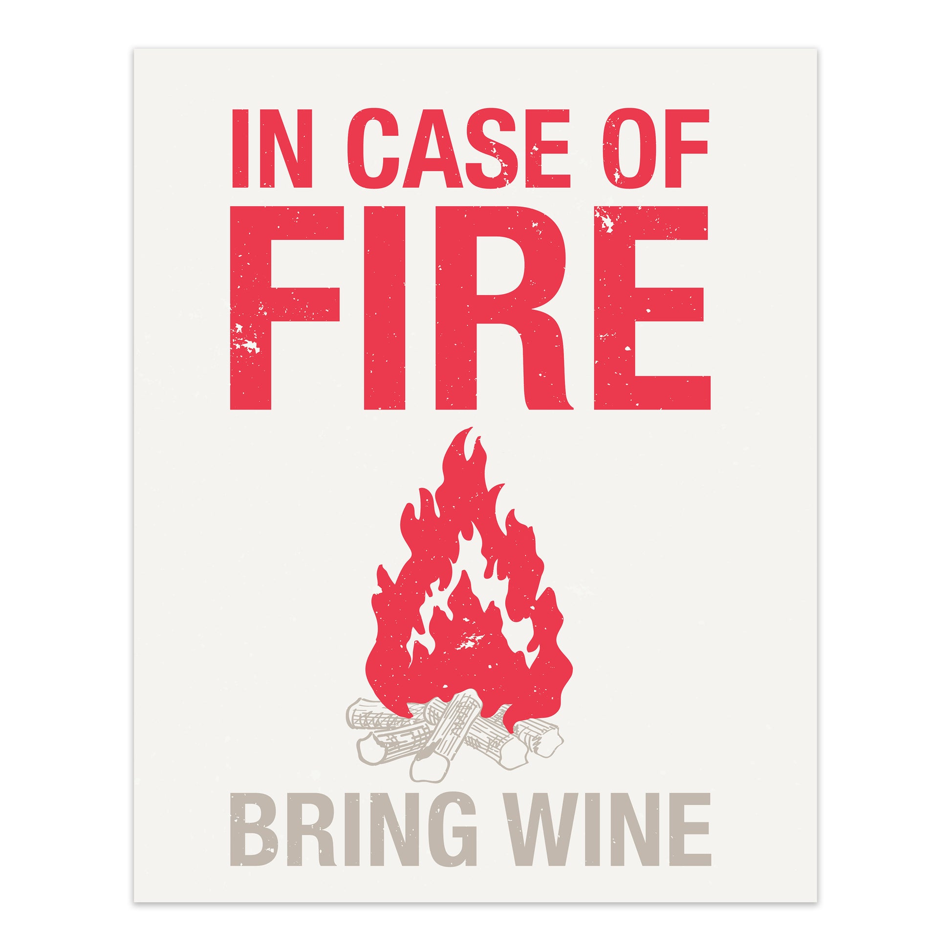 Inspired by the classic safety signage "in case of fire, break glass" our print features a simple line drawing of a campfire matched with humorous text suggesting various fireside treats. The entire image is printed with a slightly distressed texture.