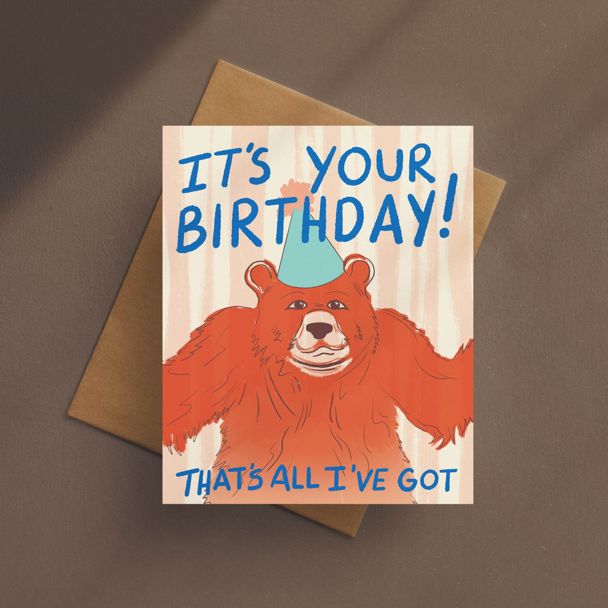 Big bear energy. Zero plan. This one from Starfangled Press is for when you just wanna say “It’s your birthday!” and call it good. This bear’s excited, mildly embarrassed, and bluntly honest. Great for when you want to keep it light, funny, and real, without making a whole production out of it. Perfect for friends, coworkers, or anyone who’ll appreciate a card that’s basically a lovable shrug - with fur.