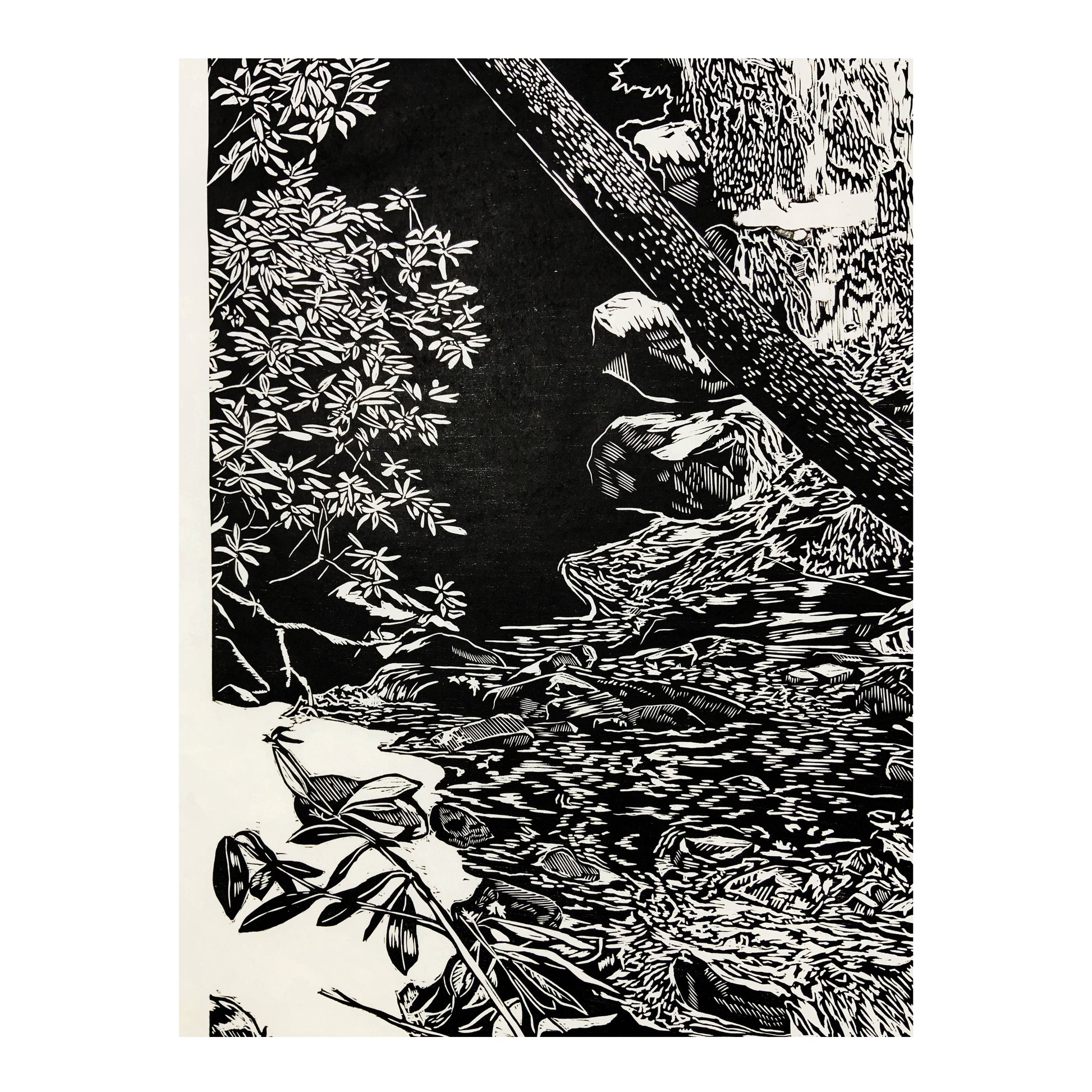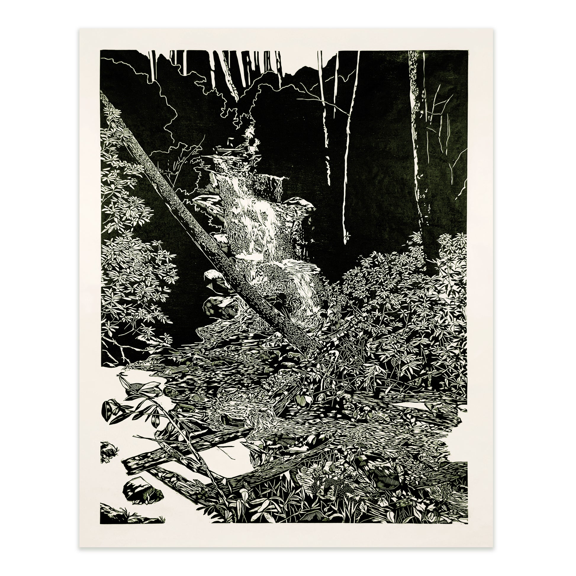 Log Hollow Falls Woodcut Print