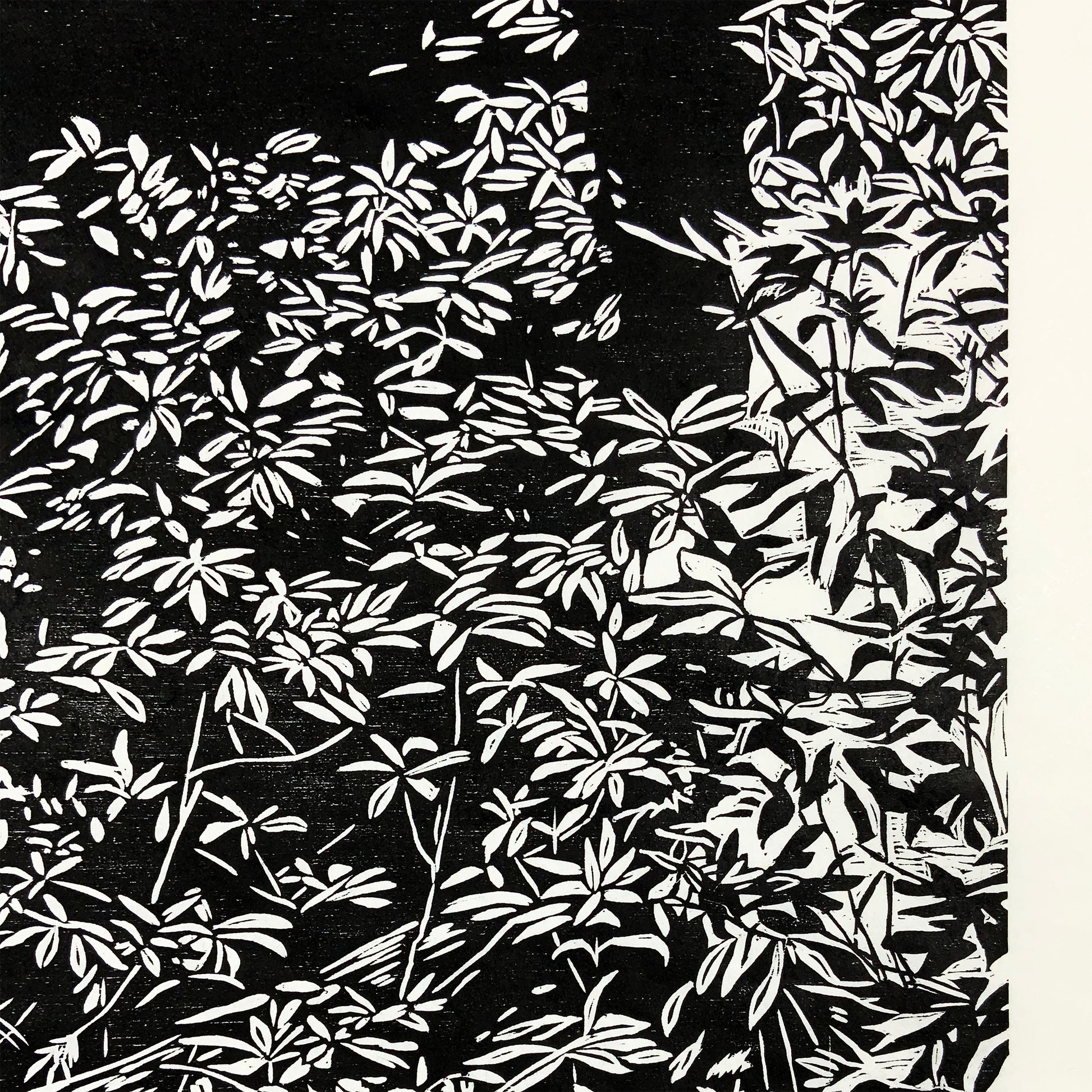 Carved from a 44" x 34" woodblock and printed on a 51.5" x 39.5" sheet of beautiful Okawara Paper from Hiromi Papers in Japan.