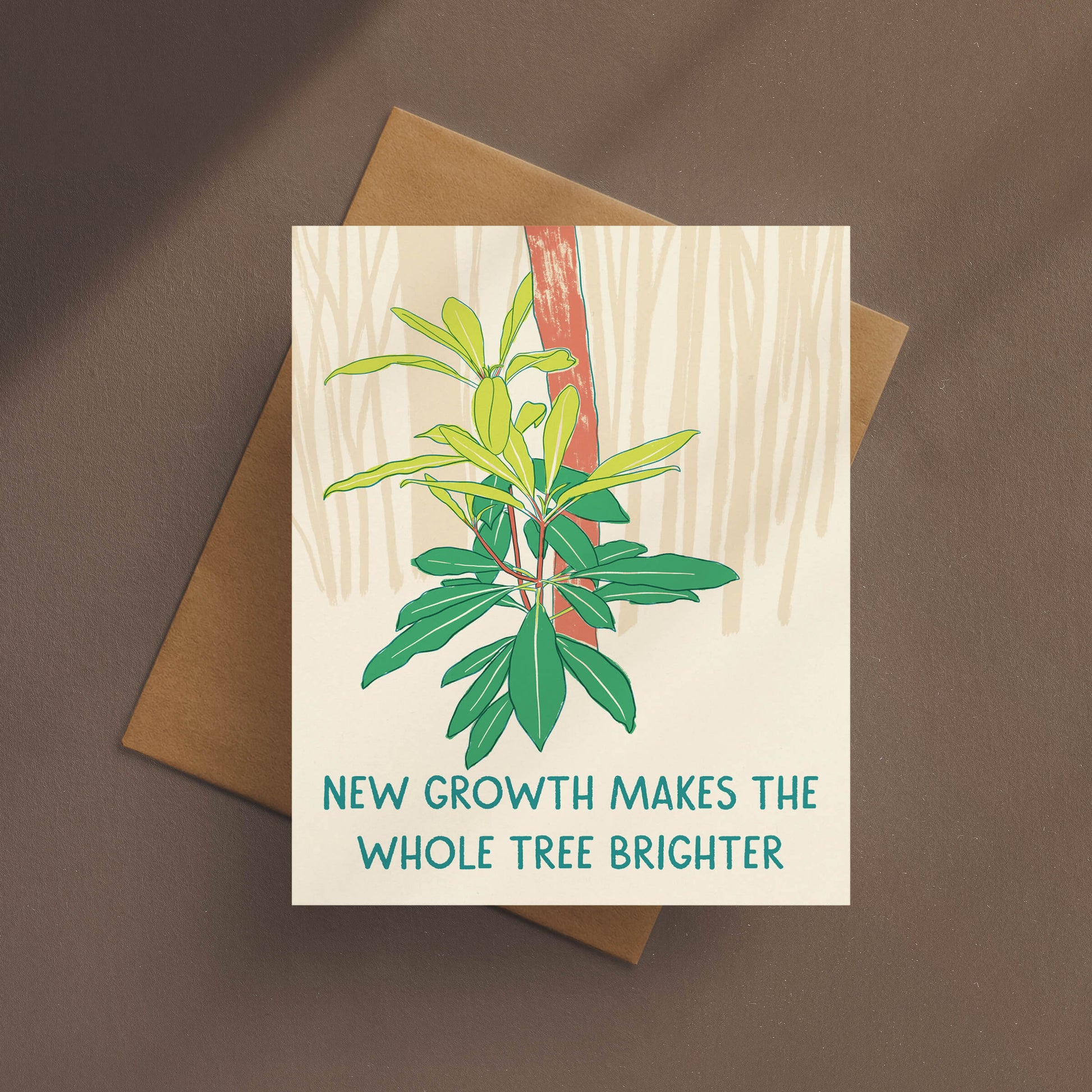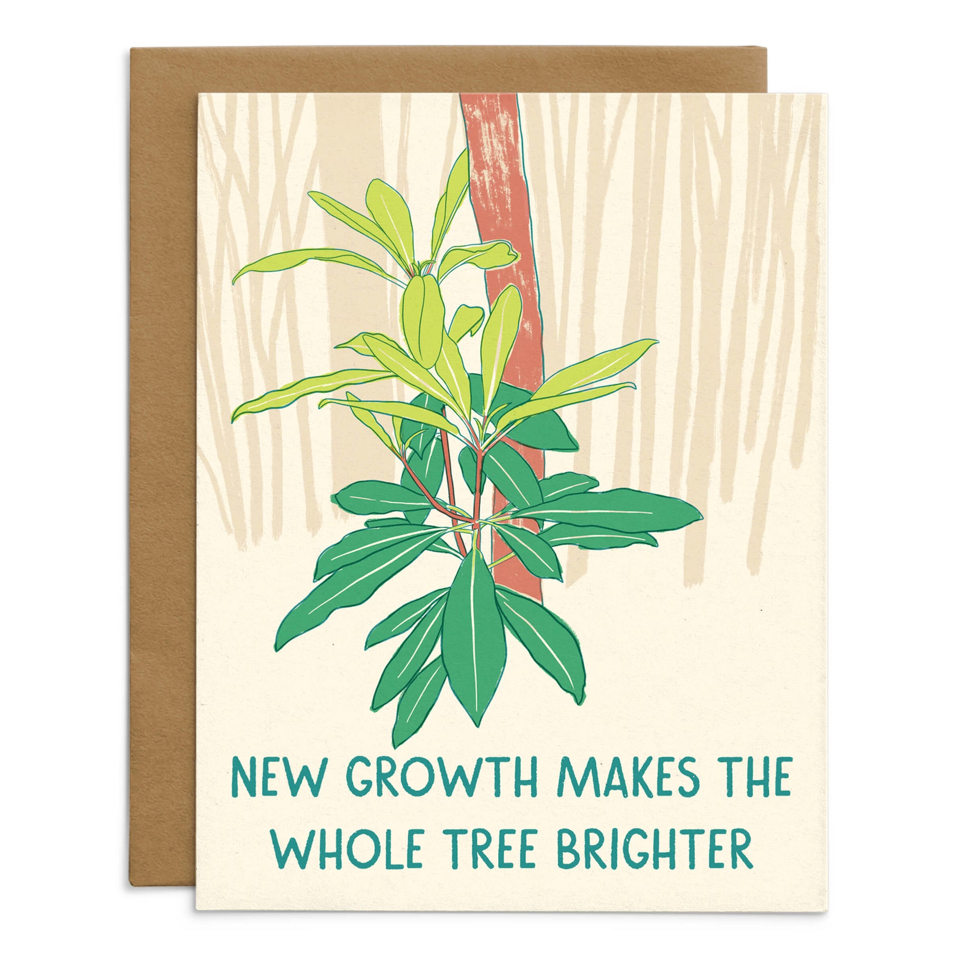 Here’s to the fresh starts that brighten up the whole family tree. This sweet card from Starfangled Press is just right for new parents - whether by birth, adoption, or any other way love grows. With its tender rhododendron sprouting new leaves, it’s a gentle way to celebrate new babies, growing families, or even a wedding that’s adding new branches to the tree.