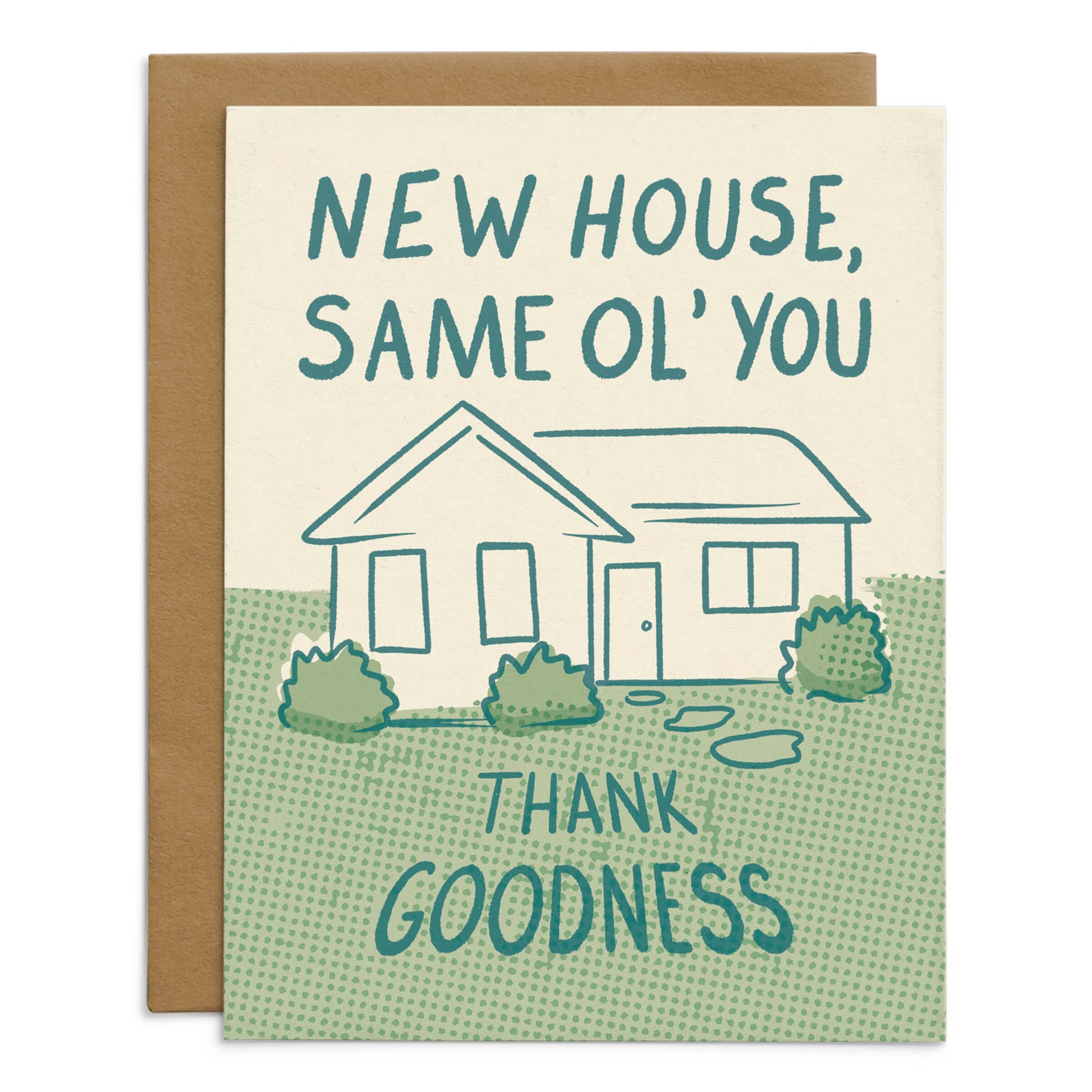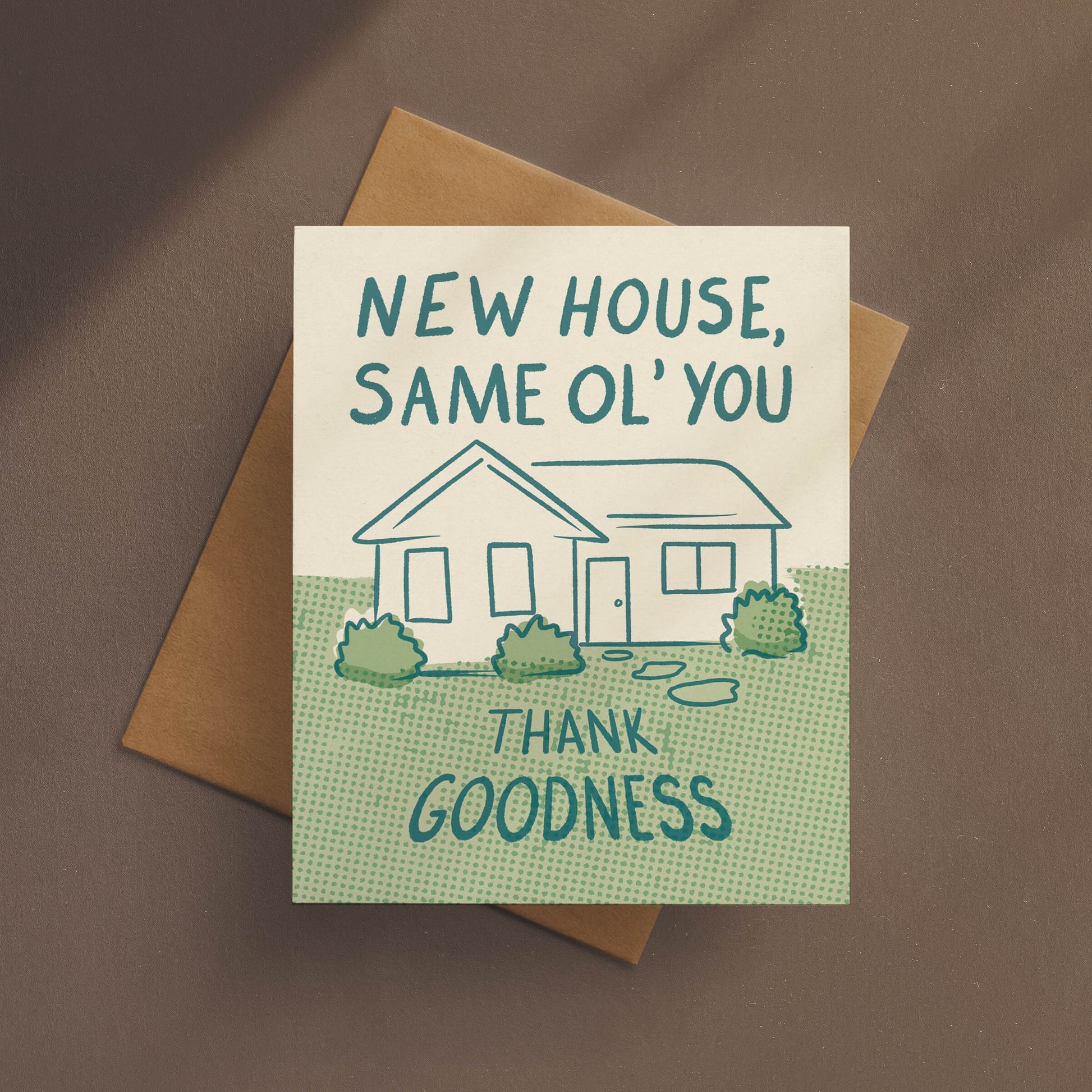 A new house is exciting, but thank goodness some things don’t change. This card from Starfangled Press, with its sweet retro house sketch, is warm, honest, and a little silly.