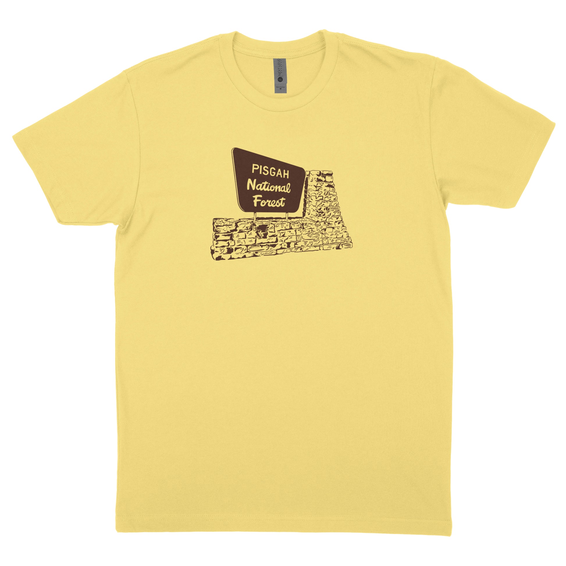 You won't go unnoticed in the Pisgah Stone Sign Crew Neck T-Shirt from Starfangled Press! Its unique design is inspired by the iconic stonework of a beloved national forest sign. The shirt features a quirky line drawing with a fun retro color scheme of banana cream and chocolate brown for a classic look you'll love.