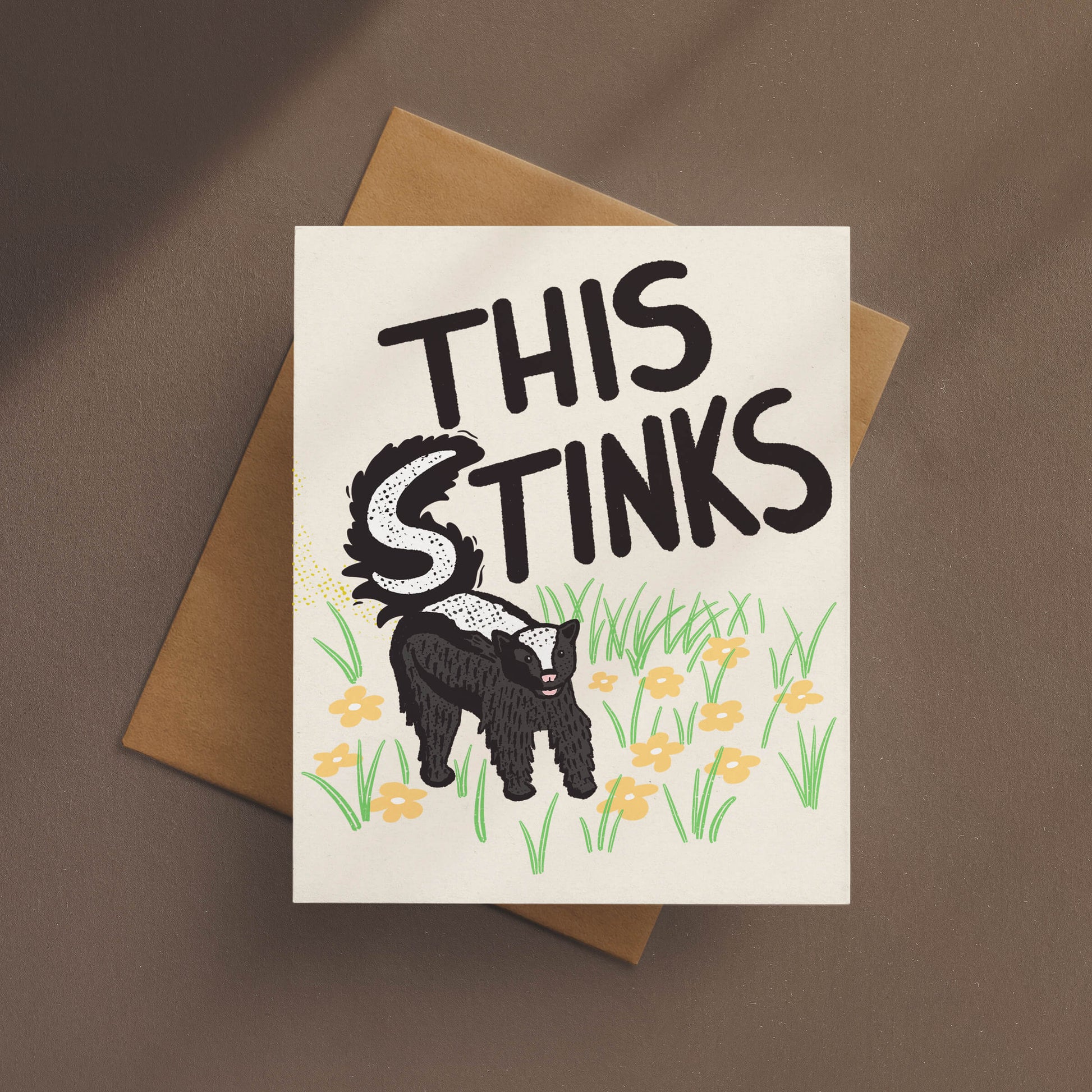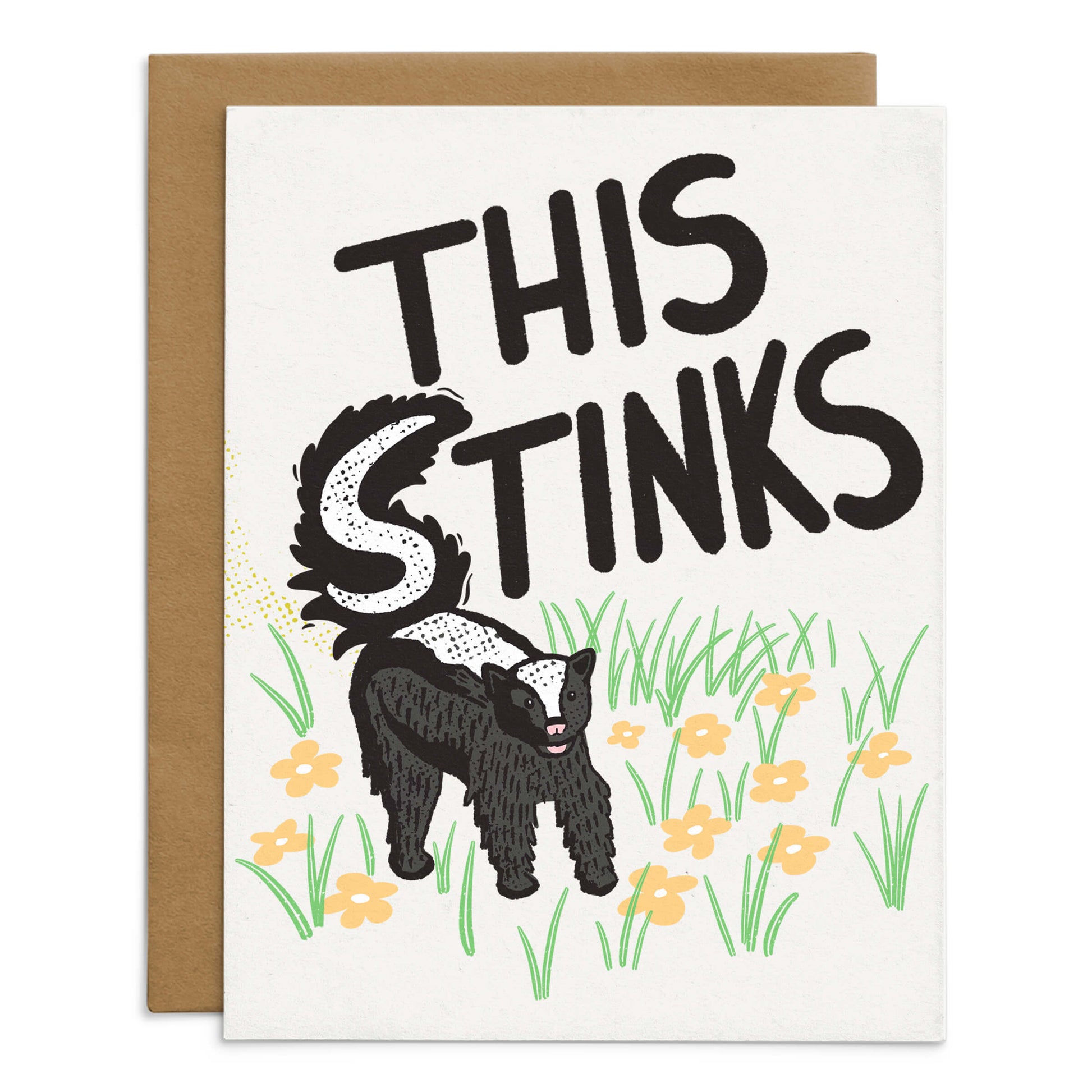Don't let the cute skunk and flowers fool you - this card means business! The This Stinks card from Starfangled Press delivers a humorous twist to your sympathy message.
