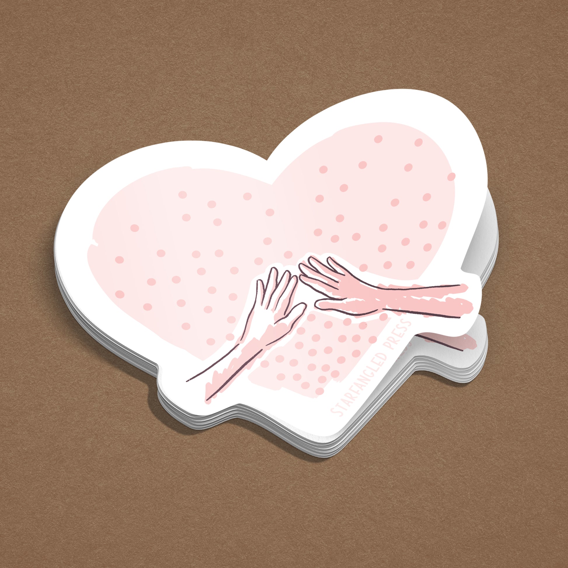Share a little tenderness with a Touch Me 3" vinyl sticker from Starfangled Press! You'll love the way the cheery heart design with two hands reaching out to touch fingertips brings a little affection to your life.